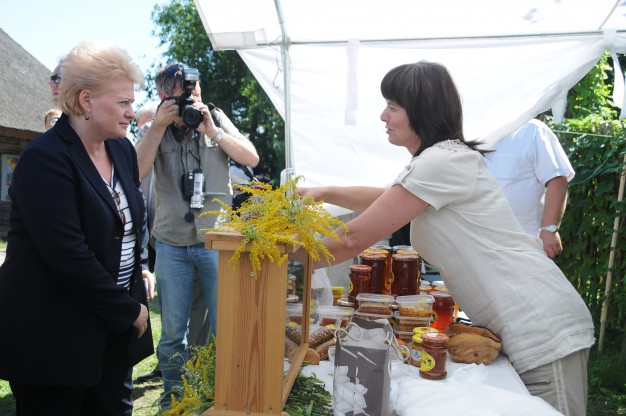 Vėliau prezidentė gavo dovanų į kasą supintą javų ir žolių puokštę. Į maišą teko dėti vadinamąjį citvarą: medaus ir žolelių mišinį. Prekeivė rekomendavo politikei kas rytą suvalgyti po šaukštelį.