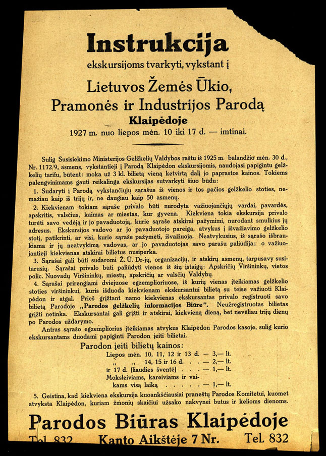 Klaipėdoje paroda vyko 1927 m. liepos 10-17 dienomis. Joje skirtas dėmesys ir Klaipėdos krašto žvejybai bei laivų statybai.