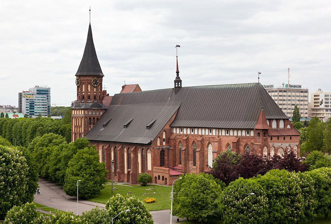 ATSTATYTA. Kionigsbergo katedra istoriniame Kneiphofo rajone, dabar vadinamame čia palaidoto vokiečių filosofo Imanuelio Kanto salos vardu, sudegusi po karo stovėjo kone 50 metų. Jos atstatymas prasidėjo tik 1992 m. Tomo Gukausko nuotr.