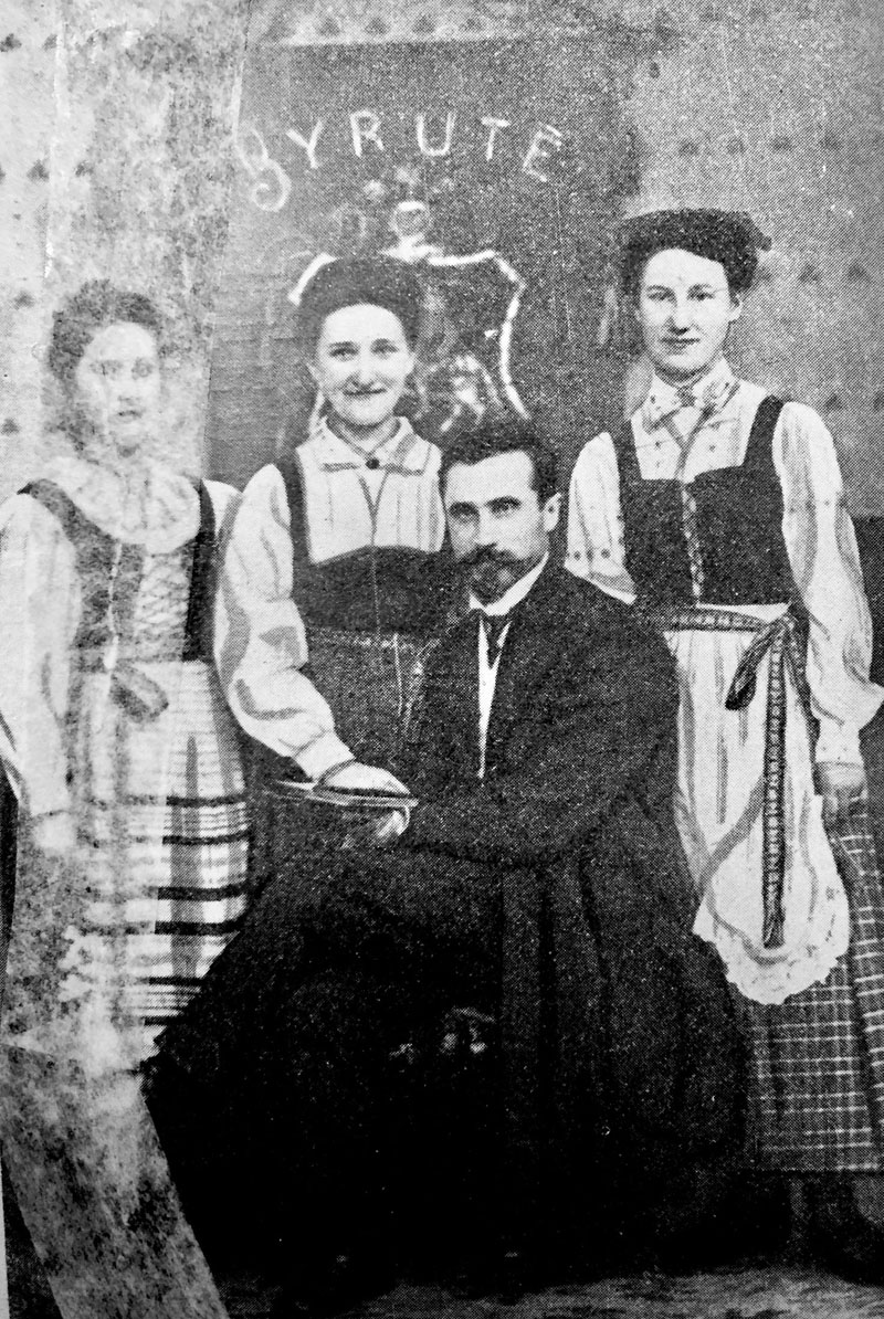 Stovi iš kairės: Gustė ir Marytė Brožaitytės, Jonušaitytė ir J. Vanagaitis.