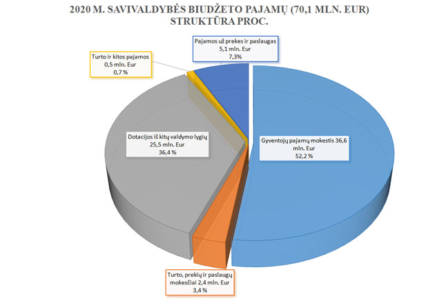 Planuojamos 2020 m. savivaldybės biudžeto pajamos – 70,1 mln. eurų.