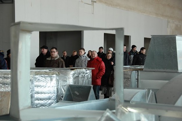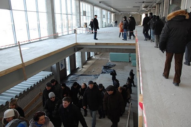 Žmonės buvo vedžiojami po statomą objektą, o megafonu "apsiginklavęs" meras komentavo tai, kas statybose jau nuveikta ir pasakojo apie darbus, planuojamus artimiausiu metu.