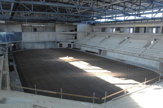 Šiuo metu klojamos "Švyturio" vardu pavadintos arenos grindys, tik kovą turėtų prasidėti intensyvūs vidaus apdailos darbai, fasadas beveik visiškai baigtas, tribūnos - tuščios: kėdės jau užsakytos, bet dar tik gaminamos Kinijoje. Užtruks jų atgabenimas į Klaipėdą.