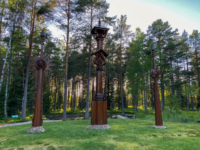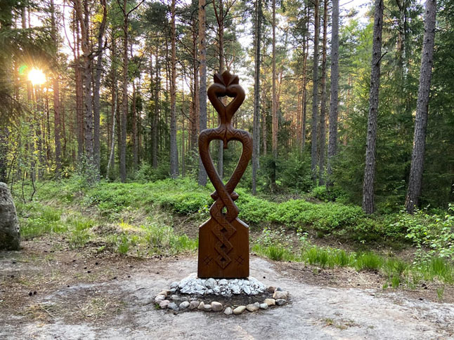 SKAMBA. Tykiai stovint prie Perkūno skulptūros, jei yra vėjo, girdisi medinių vėjo varpelių tilindžiavimas.