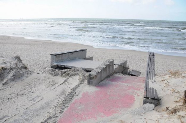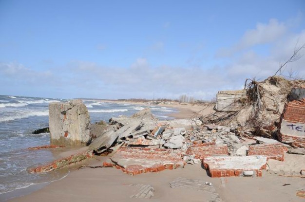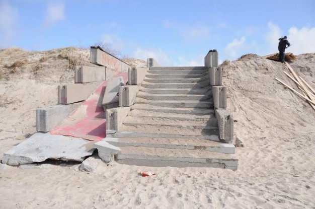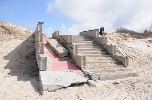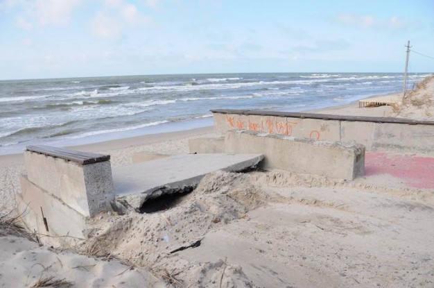 2011 metų lapkritį ir 2012-ųjų sausį audros gerokai nusiaubė paplūdimius. Nuslinkusios kopos nuniokojo betoninius laiptus ir nuovažą Neįgaliųjų pliaže, medinius laiptus Melnragėje ir Giruliuose. Vėtros gatvėje prie molo po audros atsivėrė buvusios senosios gelbėjimo stoties griuvėsiai. Ten yra susidariusi avarinė padėtis - laiptai nukritę. Būtina statybų laužą išvežti iki sezono pradžios, nes jis kelia grėsmę klaipėdiečiams ir miesto svečiams. Audros padarinių likvidavimo darbus norima atlikti per gegužę.