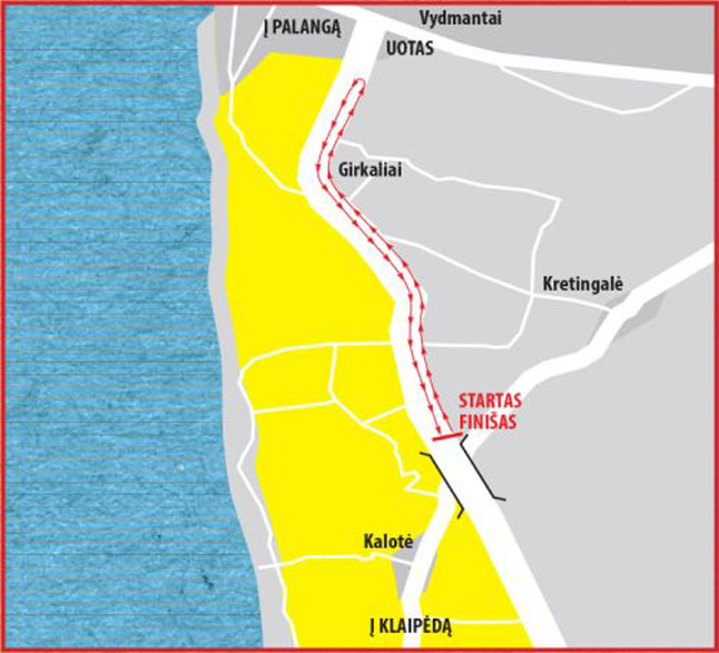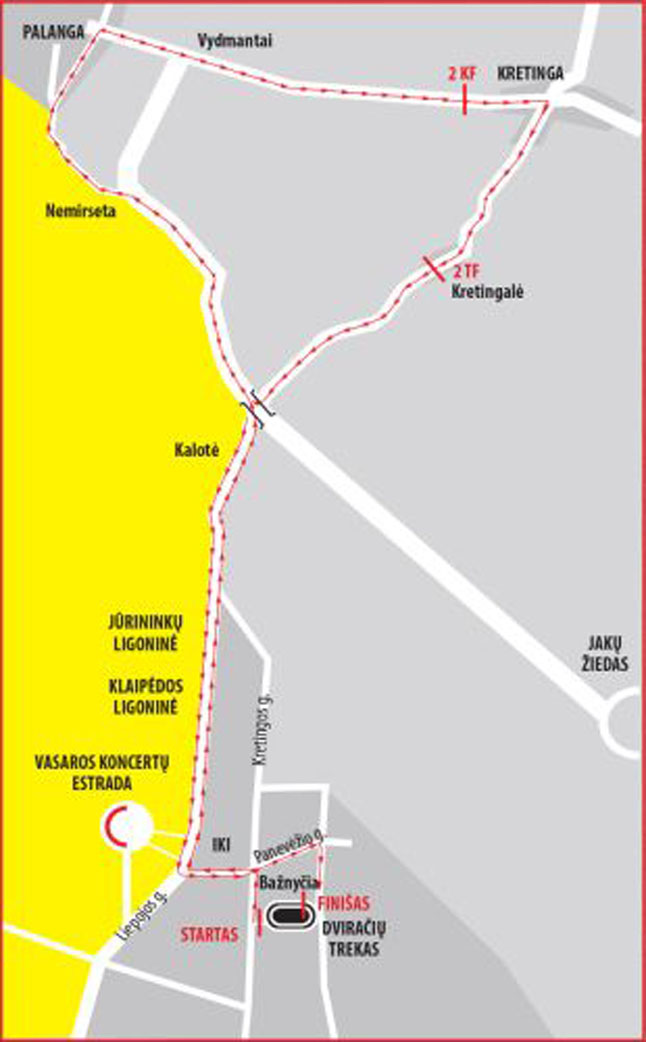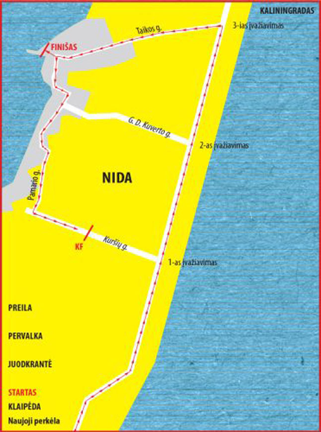 2. Pirmas etapas gegužės 24 d. 13.30 val. Klaipėda – Nida, 8 ratai Nidos gatvėmis, uždaromos Nidos gatvės