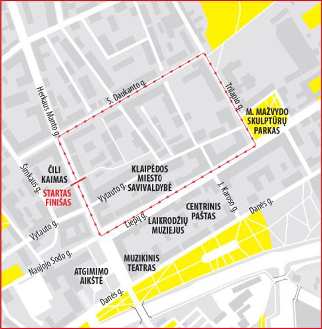 5. Ketvirtas etapas gegužės 26 d. 10.00 val. lenktynės Klaipėdos miesto gatvėmis. Uždaromas nurodytos Klaipėdos miesto gatvės iki 13.00 val.
