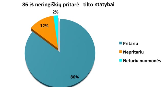 Apklausa, vykusi 2014 m. kovo 4 -15 d. parodė, jog tilto statybai į Kuršių neriją pritaria 86 proc. , nepritaria -12 proc. ir 2 proc. nurodė neturintys nuomonės šiuo klausimu.