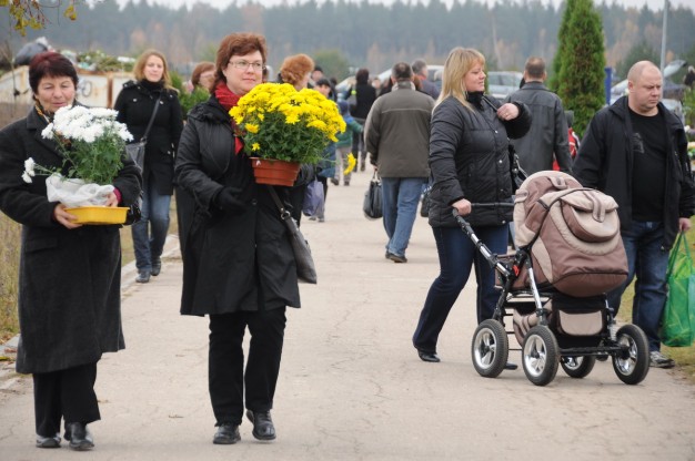 Didelio pirkėjų antplūdžio nepajuto ir prie Lėbartų kapinių gėlėmis prekiaujantieji. Pasak prekybininkų, žmonės šiemet labiau pirko mažesnes puokštes ar gėlių kompozocijas, labiau tikras, o ne dirbtines gėles. Populiarios buvo žalumynų kompozicijos su tikromis ir dirbtinėmis gėlėmis ar vien tik žalumynų kompozicijos.