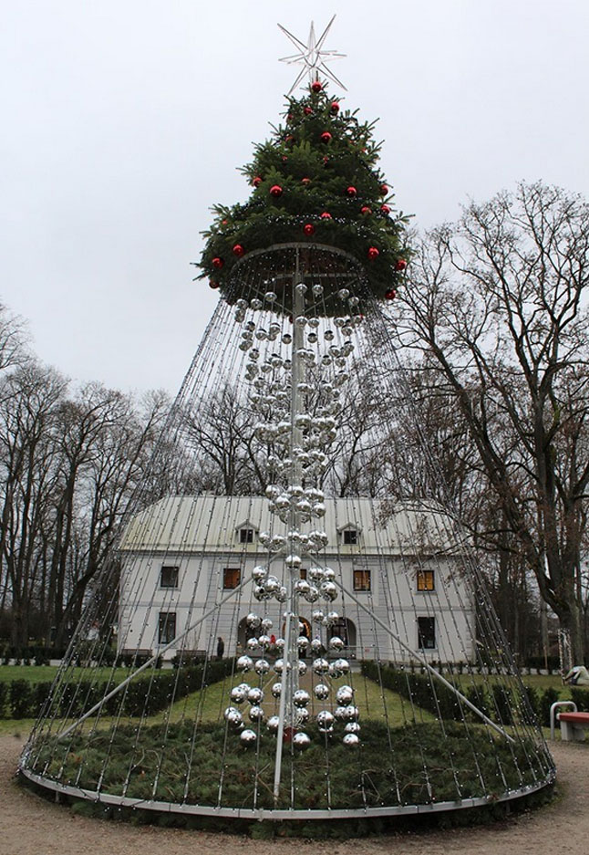Prie akį veriančiu baltumu spindinčios eglutės dera ir šalimais įkurdinti švytintys elniai bei dangiškas melodijas grojantys angelai. Jų kompaniją šiemet papildė po meteorų lietumi šokanti 2D pora.