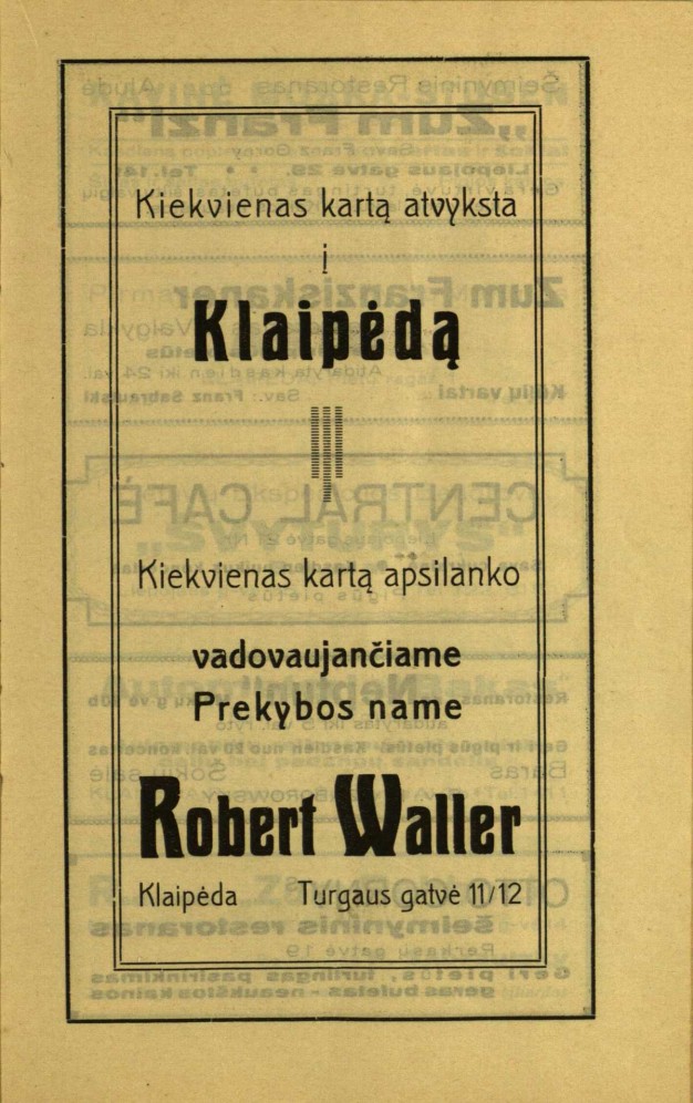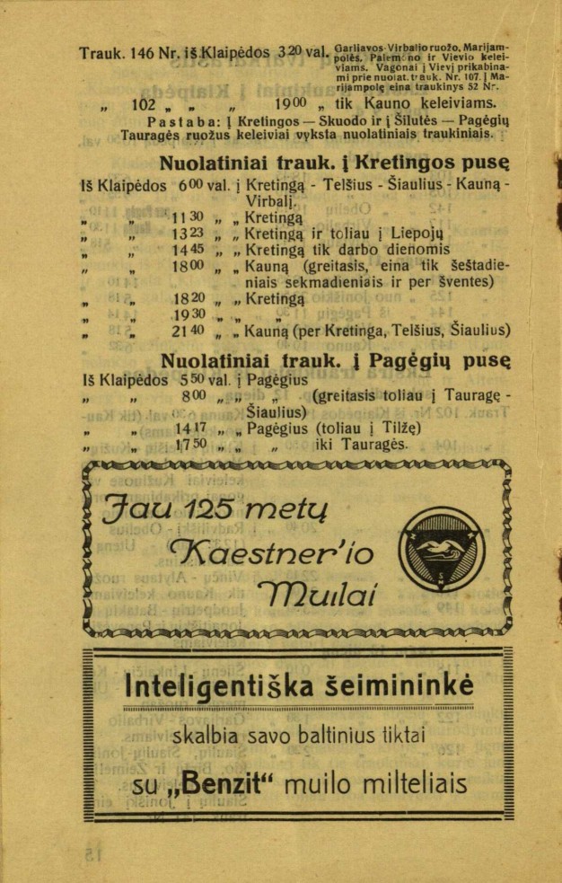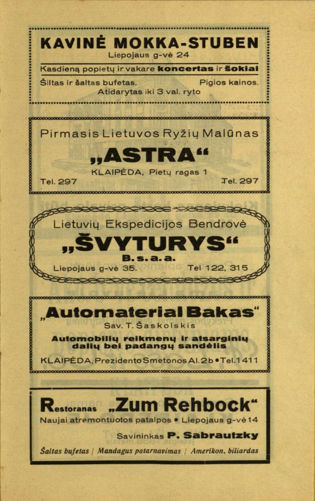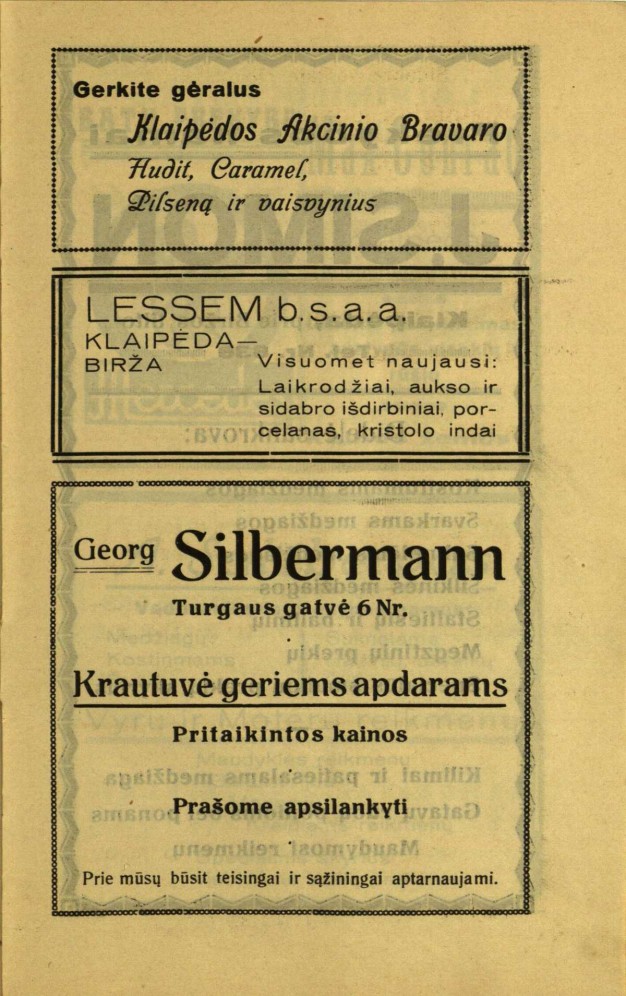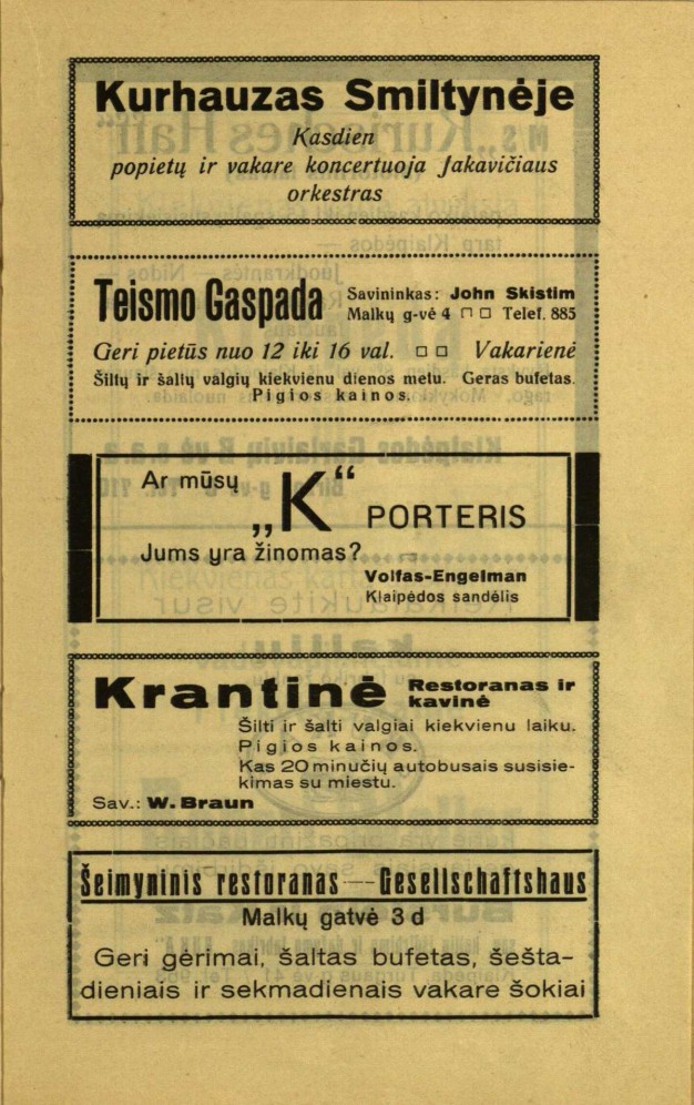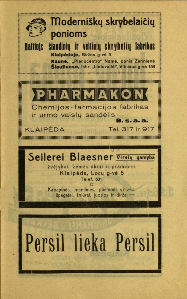 Dar įdomesnės reklamos. Vienoje iš jų klausiama: „Ar mūsų K porteris jums yra žinomas?“, o paprasčiausia reklama – su daug informacijos: „Persil lieka Persil“.
