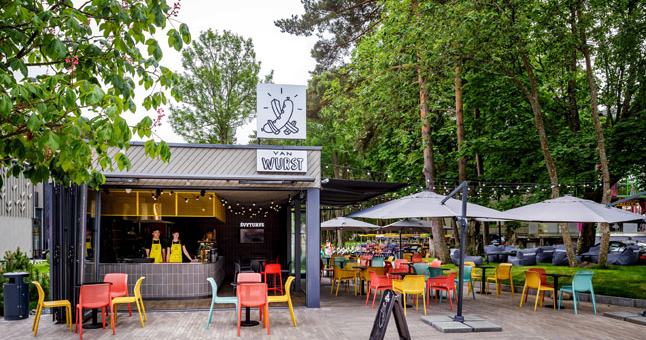 Baigus žaidimą galima atsipūsti poilsio zonose su hamakais ir sėdmaišiais, pasimėgauti vokiško ir belgiško maisto kultūra „Van Wurst“.