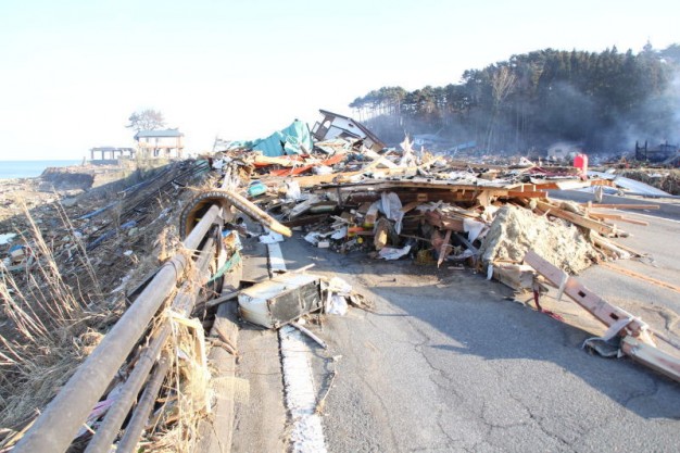 "Milžiniškas cunamis visiškai arba iš dalies sugriovė namus ir pastatus prie vandenyno ir upių.