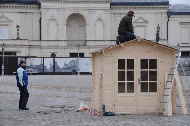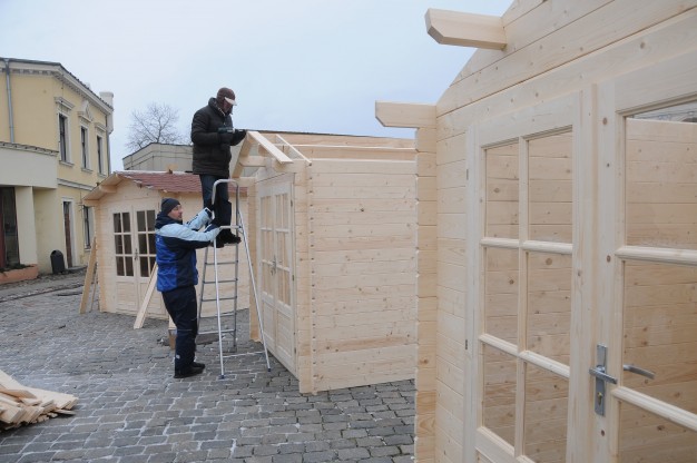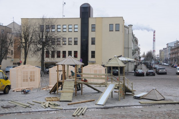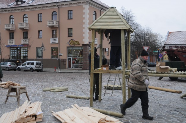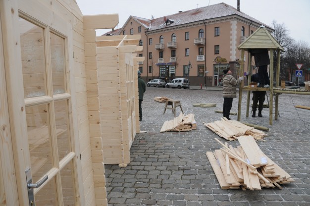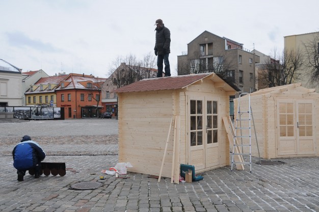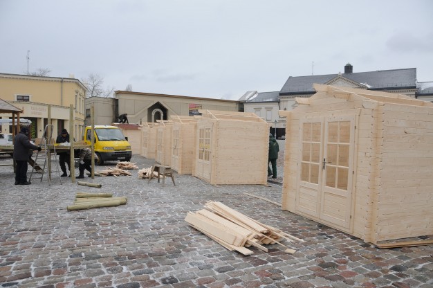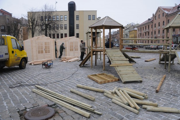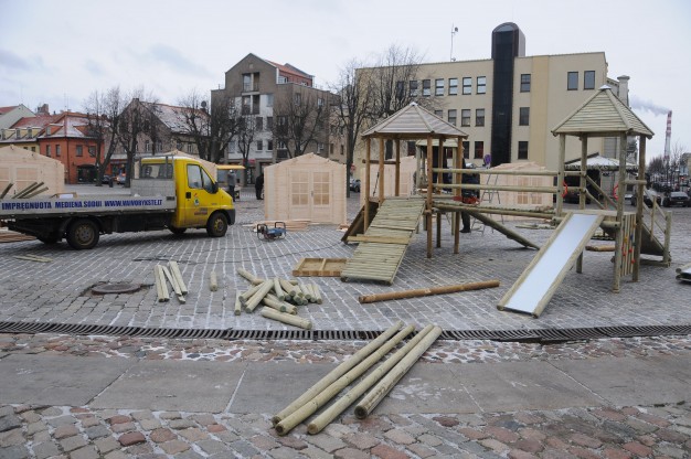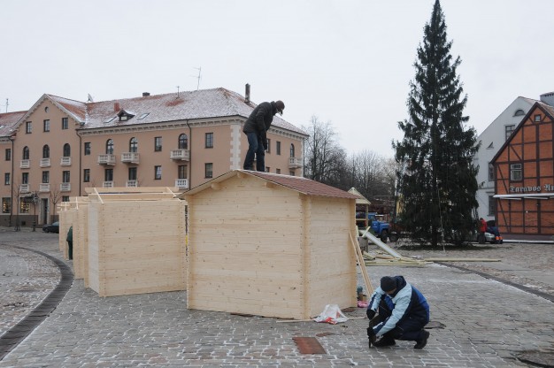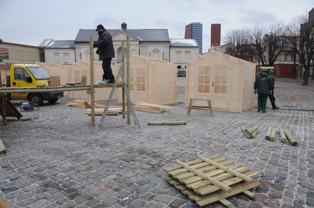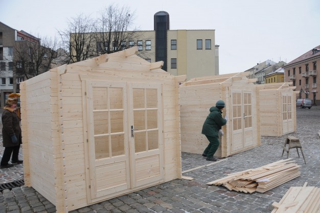 Ketvirtadienį Teatro aikštėje pradėta montuoti renginiams skirtus medinius laikinus namelius. Juose švenčių metų bus prekiaujama karštais gėrimais bei skanumynais. Planuojama, kad kioskeliai veiks penktadieniais ir šeštadieniais 16-19 val. iki pat Kalėdų.