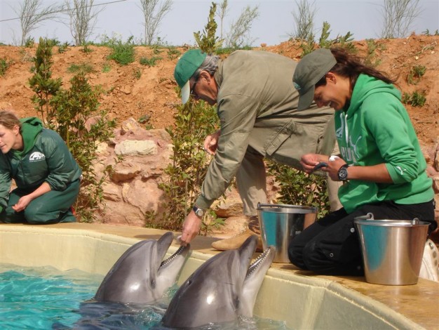 Jūrų muziejaus darbuotojams gyvūnus padeda prižiūrėti kolegai graikai. Graikų treneriai yra pakankamai patyrę: du iš jų stažavo keletą mėnesių Jūrų muziejuje Klaipėdoje, likę yra dirbę kituose pasaulio delfinariumuose.