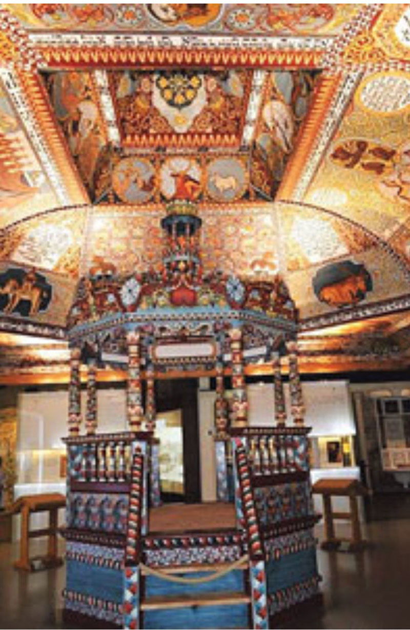 Atkurtos medinės sinagogos fragmentas muziejuje POLIN