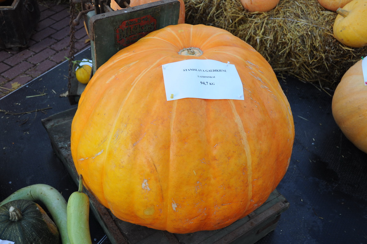 Žinoma, labai daug žiūrovų sutraukė moliūgų ekspozicija. Šiemet pirmą vietą laimėjo išauginusi didžiausią moliūgą, sveriantį net 94,7 kg Stanislava Galdikienė iš Lazdininkų kaimo. Jai atiteko ir pagrindinis tradicinis prizas – gyvas kalakutas bei priekaba malkų. Jos moliūgas didžiausias per visus tuos 14 metų ir sumušė ankstesnį 88,5 kg rekordą. „Ne, aš jo neglosčiau, tiesiog augo ir užaugo. Tiesa, du nulūžo, o va trečias - ne“, - prisipažino S. Galdikienė.