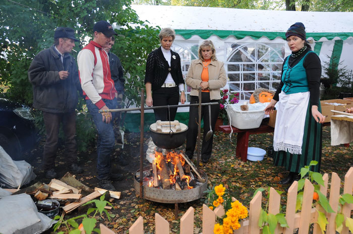Moliūgo šventės pusėje buvo verdama moliūgų ir žirnių koše, kuria buvo vaišinami praeiviai.