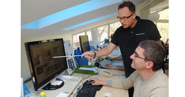 SUREDAGUOTAS laikraščio puslapis grįžta pas maketuotoją, kuris pataisytą rankraštį koreguoja kompiuteriniame makete