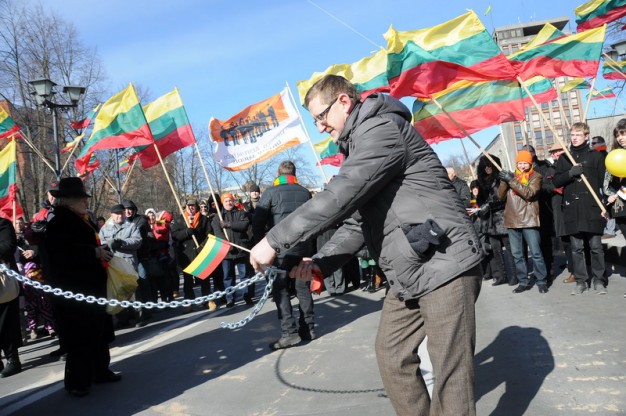 Prisimenant, kaip masiškai klaipėdiečiai renkasi į kalėdinės eglutės įžiebimo ceremoniją, tenka pastebėti, kad Kovo 11-ąją švenčiame keliskart kukliau. Nors šiai gražiai akcijai ir buvo parinkta netradicinė erdvė - norinčiųjų išlaisvėti nebuvo labai daug.