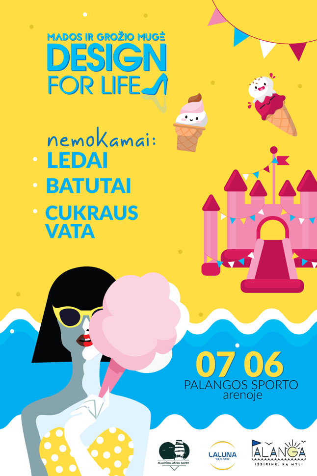 Susiruošėte liepos 6-ąją praleisti pajūryje? Ieškote pramogų ir išskirtinio apsipirkimo vienoje vietoje? Tada Jus tikrai suvilios Palangos sporto arenoje, Sporto g. 3, vyksiantis išskirtinis renginys – mados ir grožio mugė ,,Design for life’’. Liepos 6 dieną nuo 12 iki 20 val. geidžiamiausioje vasaros sostinėje Palangoje vyksianti mugė po vienu stogu suburs virš 100 prekės ženklų iš visos Lietuvos ir siūlys pasinerti į mados ir grožio paieškas. Mugė lankytojus vilios ne tik įspūdingu skaičiumi dalyvių, bet ir nemokamais batutais, cukraus vata ir ledais.