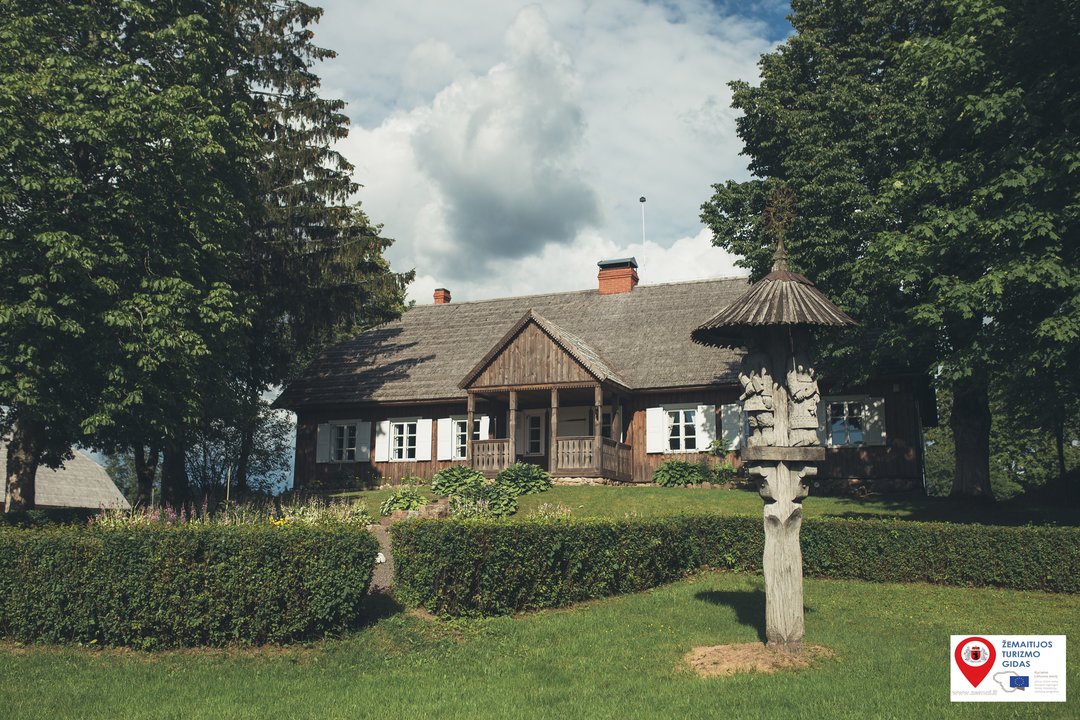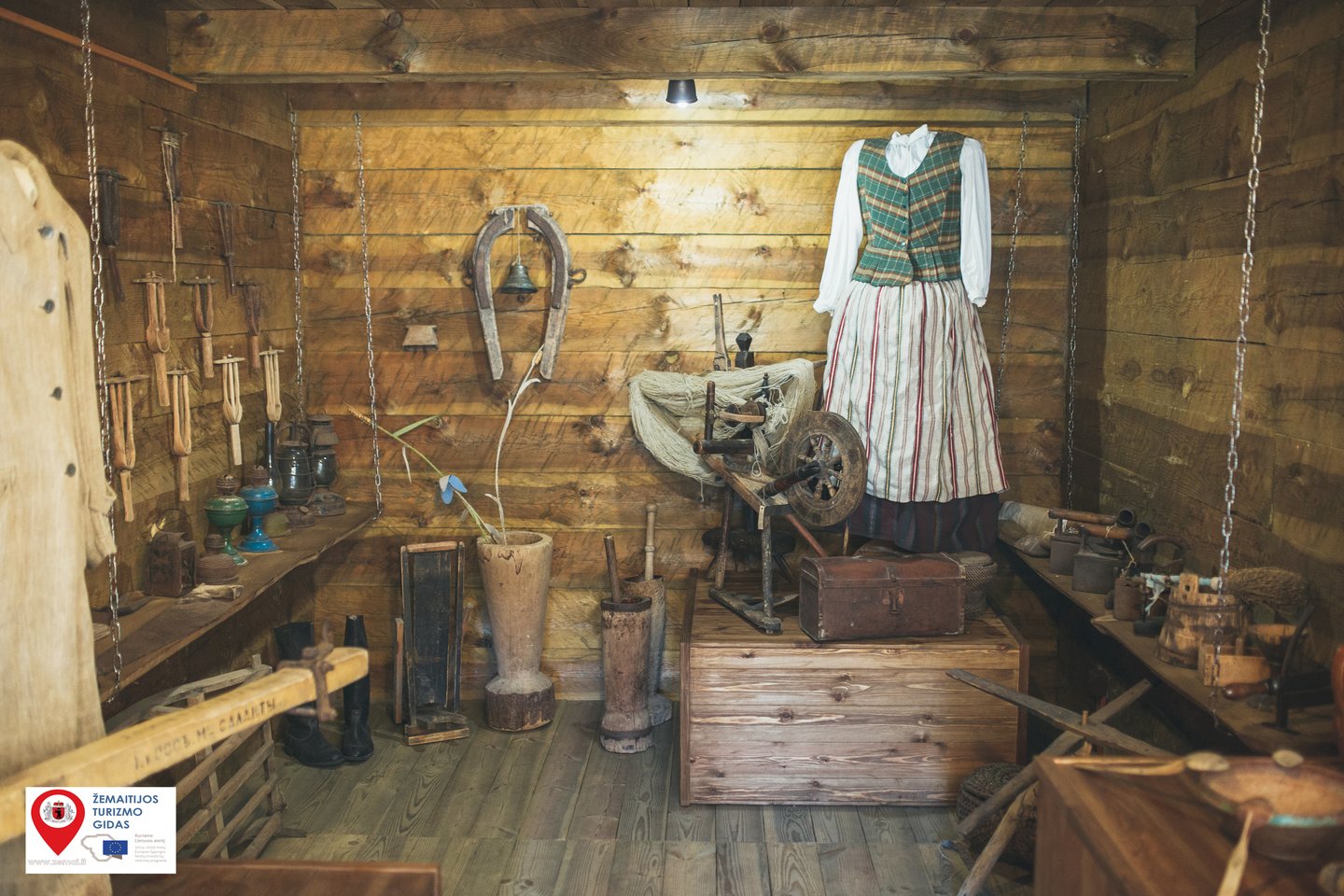 Atstatytame tvarte suformuotos salės tautodailei ir seniesiems amatams. Lankytojus pasitinka sakralinis liaudies kryždirbystės menas, o sodybos svirne eksponuojama autentiškų daiktų pagrindu atkurta iš tų pačių apylinkių kilusio žymaus žemaičių medžio drožėjo Stanislovo Riaubos (1904–1982) memorialinė ekspozicija: čia daug sužinosite apie vieną iškiliausių Žemaitijos liaudies meistrų, susipažinsite su unikalia jo kūryba.