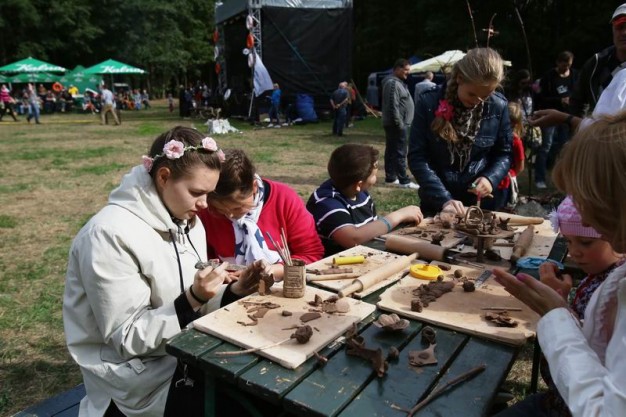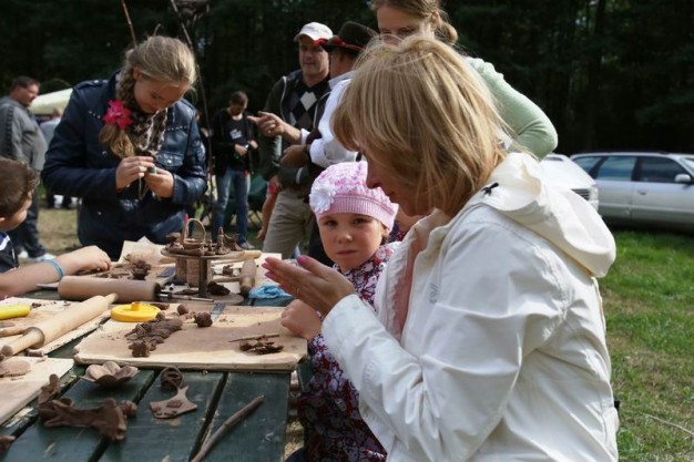 Vaikus, rodos, niekuomet nenustygstančius vietoje, patraukė molio lipdymo pamokėlė, kurioje mažieji galėjo pasidaryti įvairių dirbinių. O tėveliai susibūrė aplink prieš trisdešimt metų pagamintas rankų darbo molio stakles, čia stebėjo puodelio gamybą ir dekoravimą. Lipdymas iš molio, kalvystė, medžio drožinėjimas bei gintaro gręžimas, tai tokie senovės amatai, kurie sudomina dar ir šiandien.