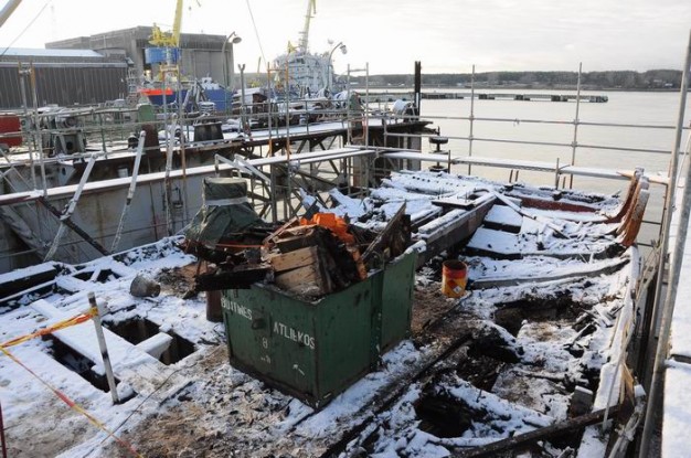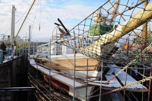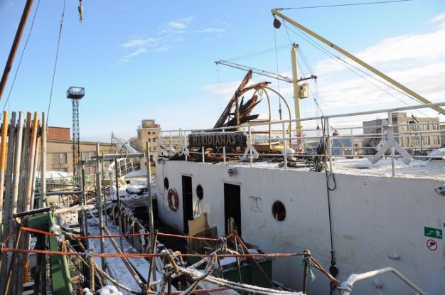 Pastačius burlaivį "Meridianas" į doką aiškėja, kad planuotų 2 mln. Lt jam atstatyti tikrai nepakaks. Laivo būklė pasirodė esanti kur kas blogesnė nei tikėtasi.