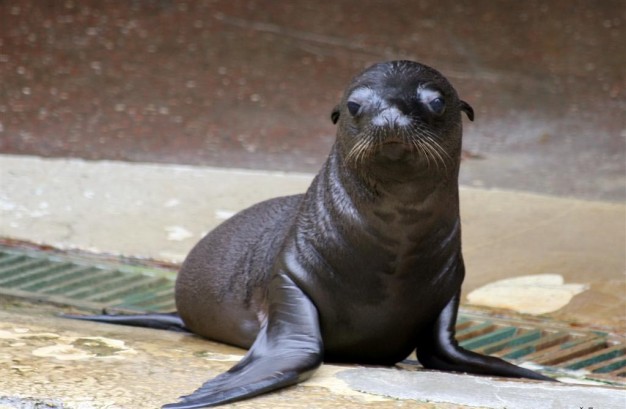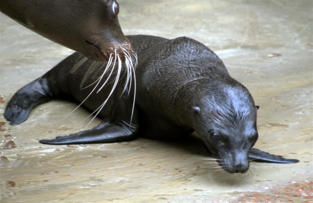 Trijų savaičių jauniklis juodu, žvilgančiu kailiuku – guvus, žvalus ir nė per plauką nesitraukia nuo savo rūpestingos mamos Lijos, kuri jį prižiūri ir maitina. Mamos pienu mažylis mis iki pusės metų, vėliau jo, kaip ir tėvų racioną, sudarys žuvis. Mažylio tėtis dvidešimtmetis Henris pakol kas gyvena atskirai nuo šeimos. Jis ir Lija į Lietuvos jūrų muziejų atkeliavo 1996 metais iš Vokietijoje esančio Duisburgo zoologijos sodo.