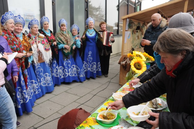 Rybačio gyventojai į kaimynų gimtadienį delegavo savo nacionalinį ansamblį „Ruskaja pesnia“ ir atvyko koncertuoti, tad rusiškosios Kuršių nerijos meno vadovė Julija Karnavina apgailestavo, kad nebuvo kaip reikiant pasiruošę Kuršių kiemui tinkančio stalo. Kartu su nuotaikingu Rybačio ansambliu dainą „Podmoskovskije večera“ dainavo ir į aikštę susirinkę neringiškiai. „Tokio svetingumo aš nesitikėjau, tiesiog galva svaigta“, - įspūdžiais dalijosi J. Karnavina.