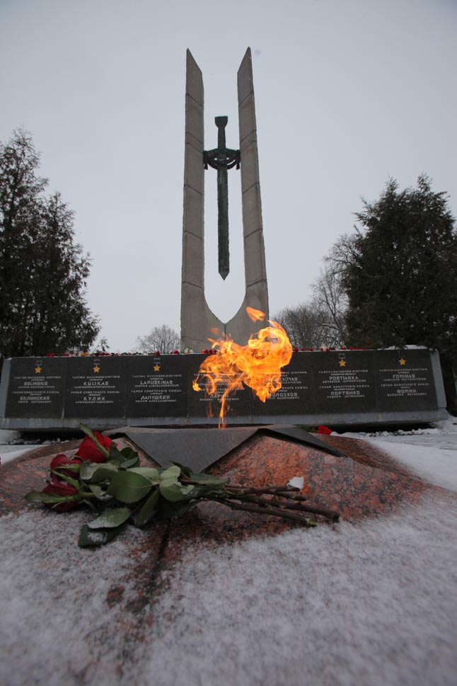Pirmadienį, sausio 28-ąją, Skulptūrų parke, prie memorialo ties Klaipėda žuvusiems Raudonosios armijos kariams, paminėtos 68-osios nacistinės Vokietijos kariuomenės pasitraukimo iš Klaipėdos metinės.