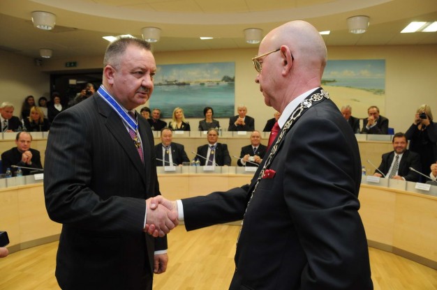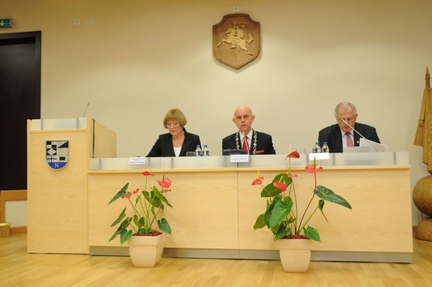 Prieš prasidedant Neringos miesto tarybos neeiliniam posėdžiui sugiedotas Lietuvos himnas. Nedidelė posėdžių salė buvo sausakimša. Posėdyje dalyvavo Lietuvos Vyriausybės kanclerio pavaduotojas Olegas Romančikas, Sveikatos apsaugos ministras Raimondas Šukys, europarlamentaras Justas Paleckis, Seimo Ekonomikos komiteto pirmininkas Dainius Budrys, Telšių vyskupas Jonas Boruta, Klaipėdos miesto meras Vytautas Grubliauskas, Trakų meras Vincas Kapočius, Šilutės meras Virginijus Pozingis, Klaipėdos universitetinės ligoninės vyriausiasis gydytojas Vinsas Janušonis ir kiti garbūs svečiai bei buvę Neringos miesto tarybos nariai.
