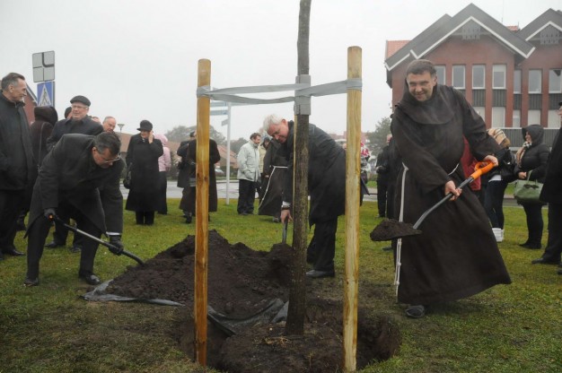Pasibaigus iškilmingam posėdžiui Neringos tarybos nariai ir garbūs svečiai netoli savivaldybės pastato pasodino ąžuoliuką.