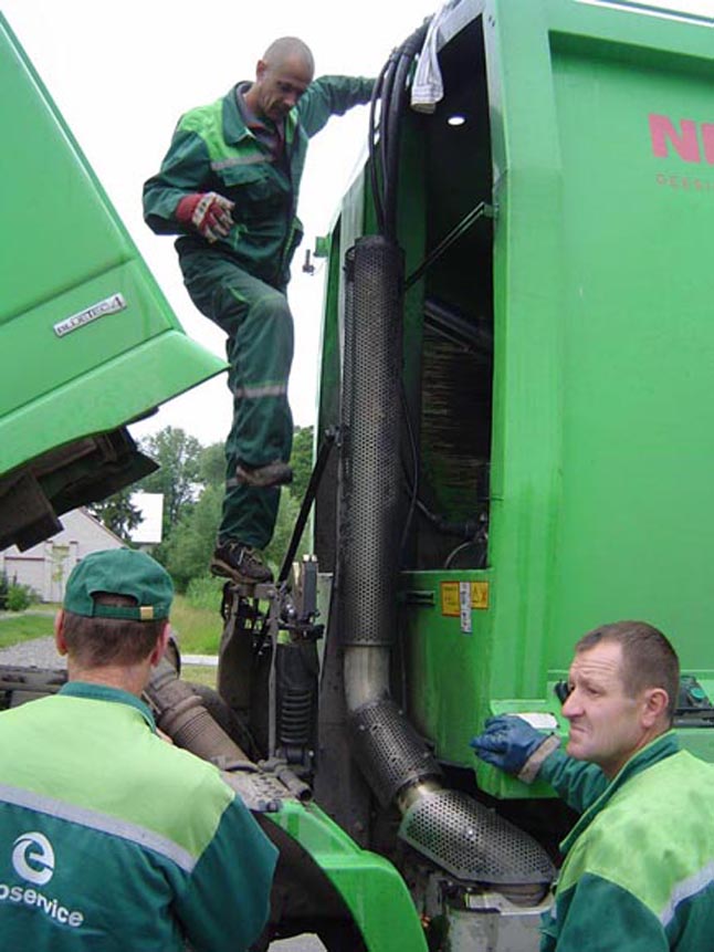 Komunalinių atliekų surinkimo Šilutės rajono savivaldybės teritorijoje ir jų išvežimo paslaugą teikiančios UAB „Ecoservice“ brigadai sunkiai sekėsi taisyti gedimą – po 10 – tos ryto šiukšliavežė pakelta vairuotojo kabina dar tebestovėjo prie atliekų konteinerių eilės.