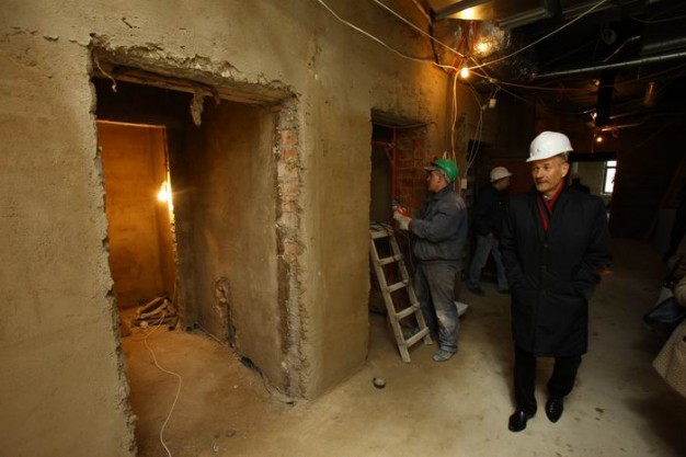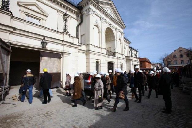 Kai teatre lankėmės praėjusių metų gruodžio 7 dieną, rekonstrukcija jau buvo įsibėgėjusi. Uždengtos duobės po to, kai buvo nugriauta dalis rūmų pastatų, giliai po žeme įrengti poliniai pamatai, kad pastatas negrimztų, įvestos inžinerinės sistemos.