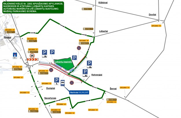 Privažiavimas į Lėbartų kapines: nuo Rimkų viaduko iki Lėbartų eismas draudžiamas (išskyrus gyventojus, pateikus atitinkamus dokumentus ir viešąjį keleivinį transportą). Apvažiavimas organizuojamas per aplinkkelius pagal pridėtą schemą.
