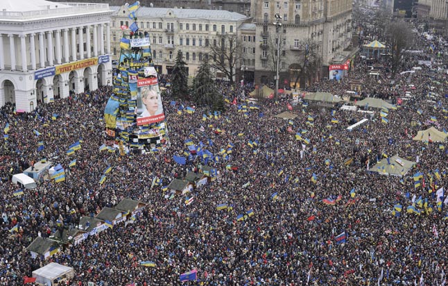 Į Maidano aikštę Kijeve suplūdę protestuotojai nesitraukia jau antrą savaitę. Jų siekis - į Europos Sąjungą orientuota šalis.