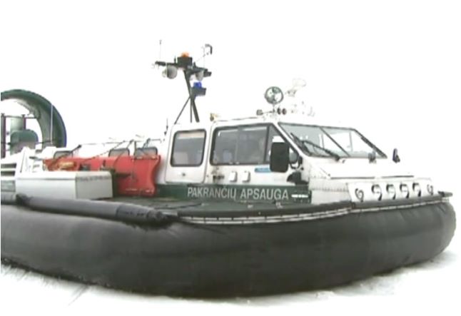 Neringos užkardos pasieniečiai rodo pirštu į laivą su oro pagalve, pavadintą „Christina“. Ši nuo 2000 m. pasieniečių naudojama universali transporto priemonė, galinti judėti vandeniu, žeme, ledu, itin padeda ne tik patruliuojant, bet ir vykdant gelbėjimo darbus.