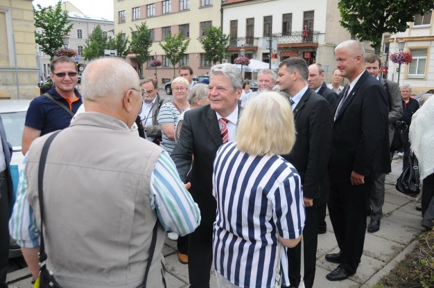 Garbingas svečias susitikimui su miesto meru Vytautu Grubliausku, liuteronų bažnyčios vyskupu Mindaugu Sabučiu, „Vilko vaikų“ bendrijos nariais ir vokiečių bendrijos nariais skyrė apie valandą.