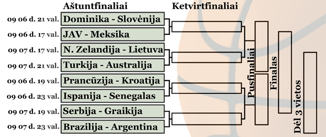 Beje, šeštadienį jie pradės aštuntfinalių maratoną - 17 val. žais su Meksikos komanda, o lietuviai į aikštelę išbėgs sekmadienį taip pat 17 val.