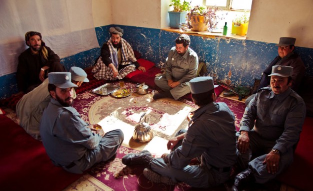 "W-laykum o a-salaam (ir su Jumis tebūnie taika), četor hasti?" (kaip laikotės?)", - atsakome. Tai ne tik išmoktos pasisveikinimo ir mandagumo frazės, bet ir gera pokalbio pradžia. Švelnus rankų paspaudimas (stipriai "lietuviškai" nesisveikinam, nes jėga čia suvokiama kaip agresyvumo ženklas) ir pasisveikinimo ritualas beveik baigtas. Pakviečia į namus arbatos. Tai - geras ženklas, rodantis, kad palikome gerą pirmąjį įspūdį. Jei nesiūlytų arbatos, reikėtų susimastyti - tai gali reikšti ne tik nenorą bendrauti, priešiškumą, bet ir gresiantį pavojų. Beje, arbatos siūlymas čia dar nereiškia, kad arbata paruošta - tai afganų svetingumo ir mandagumo ženklas, kvietimas bendrauti.
