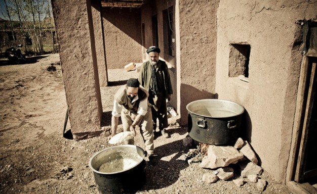 Dar tik pradėjus prisistatymo kalbą, matyt, šeimininko sūnus, gal 15-17 metų amžiaus, patiekia arbatą. Nors maži stikliniai puodeliai ir nespindi švara, bet akivaizdu, kad jie skirti ypatingoms progoms, kai užsuka svečiai - nerašytos afganų svetingumo taisyklės reikalauja su svečiais dalintis tuo, ką turi geriausia. Prie arbatos didelėje spindinčioje skardinėje lėkštėje paserviruojamos gėrybės: džiovinti žirniai, karameliniai saldainiai, migdolų riešutai ir geltonosios razinos. Gal kiek ir neįprasti užkandžiai, bet prie kartokos žalios arbatos visai tinka. Skurdžiau gyvenančių žmonių namuose ne taip retai patiekiamas ir paprastas gabalinis cukrus. Į arbatą niekas jo nededa, jis vartojamas kaip saldainiai - tiesiai į burną užgeriant arbata. Būtinai pagiriame arbatą - čia ne jos skonis svarbu, o tai, kad mums skirta tai, kas turima geriausio.