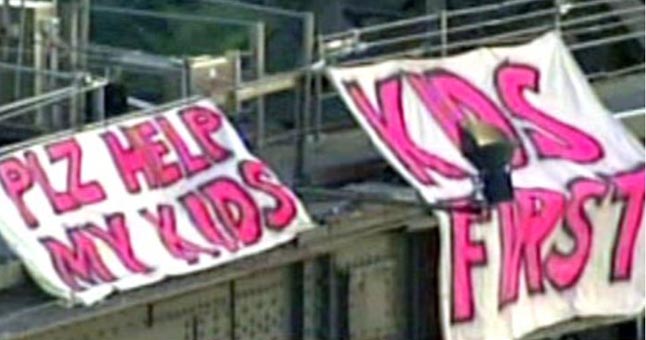 "Padėkite mano vaikams!" - buvo parašyta viename iš plakatų. Ką tik išsiskyręs 35 metų australas norėjo atkreipti dėmesį į tai, kad turi problemų su buvusia žmona ir negali reguliariai susitikinėti su savo vaikais.
