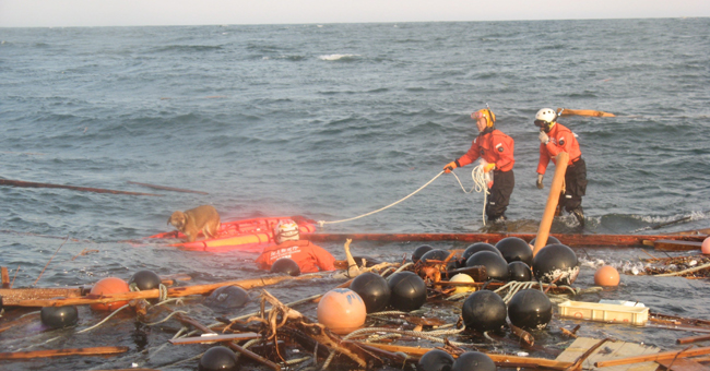 Praėjus trims savaitėms po galingos cunamio bangos Japonijos pakrantės apsauga nuo vandenyne plūduriuojančio namo stogo išgelbėjo šunį. Spėjama, kad keturkojis ant jo galėjo tupėti nuo kovo 11-osios, pranešė naujienų agentūra "Kyodo".