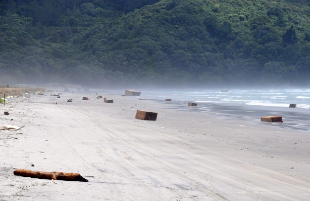 Naujojoje Zelandijoje išplėšti į sausumą išmesti laivo "Rena" konteineriai