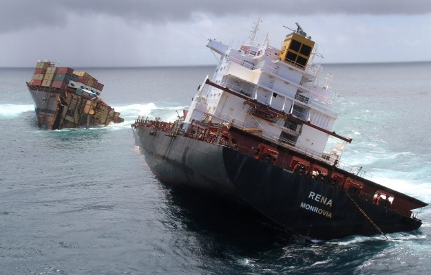 Prieš tris mėnesius avariją patyręs laivas "Rena" praėjusį sekmadienį per smarkią audrą lūžo pusiau. Vandenyje atsidūrė 150 konteinerių. Apie 700 konteinerių vis dar yra laive.