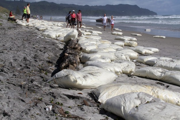 Naujojoje Zelandijoje išplėšti į sausumą išmesti avarijos ištikto krovininio laivo "Rena" konteineriai. Policijos duomenimis, ilgapirščiai pirmiausiai vogė pieno miltus, praneša agentūra AFP.