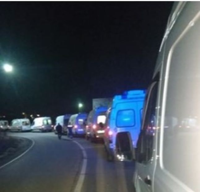 Vyras, filmuodamas situaciją iš greitosios pagalbos automobilio kabinos, pasakoja, kad medikai vyksta į „trečiąją veteranų ligoninę“, tačiau prie ligoninės privažiuoti nepavyksta, nes visos aplinkinės gatvės užkimštos „greitukių“.
