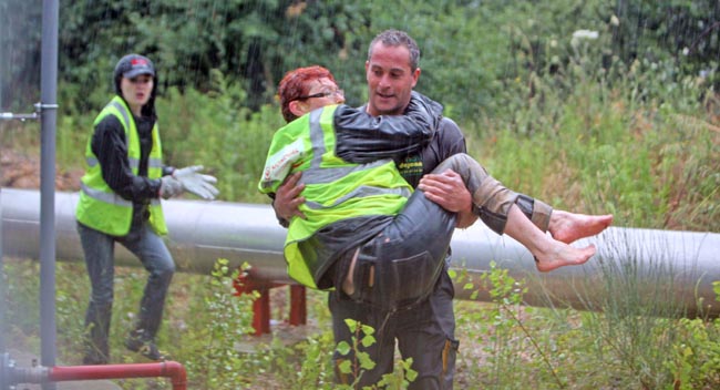 Gelbėtojai pirmiausiai stengiasi padėti tiems žmonėms, kurie liko įkalinti vandens masių savo automobiliuose, namuose ar ant pastatų stogų. Sraigtasparniais iki šiol išgelbėta 900 nelaimėlių.
