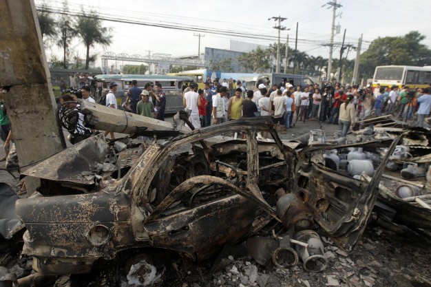 Kaip teigia vietos policijos pareigūnai, dujų balionus sunkvežimis vežė į Lagunos provinciją. Vairuotojas nesuvaldė sunkvežimio ir netoli Karmonos miesto rėžėsi į lengvąjį automobilį, kuriuo važiavo du žmonės.